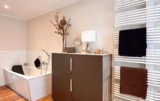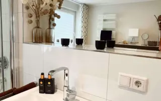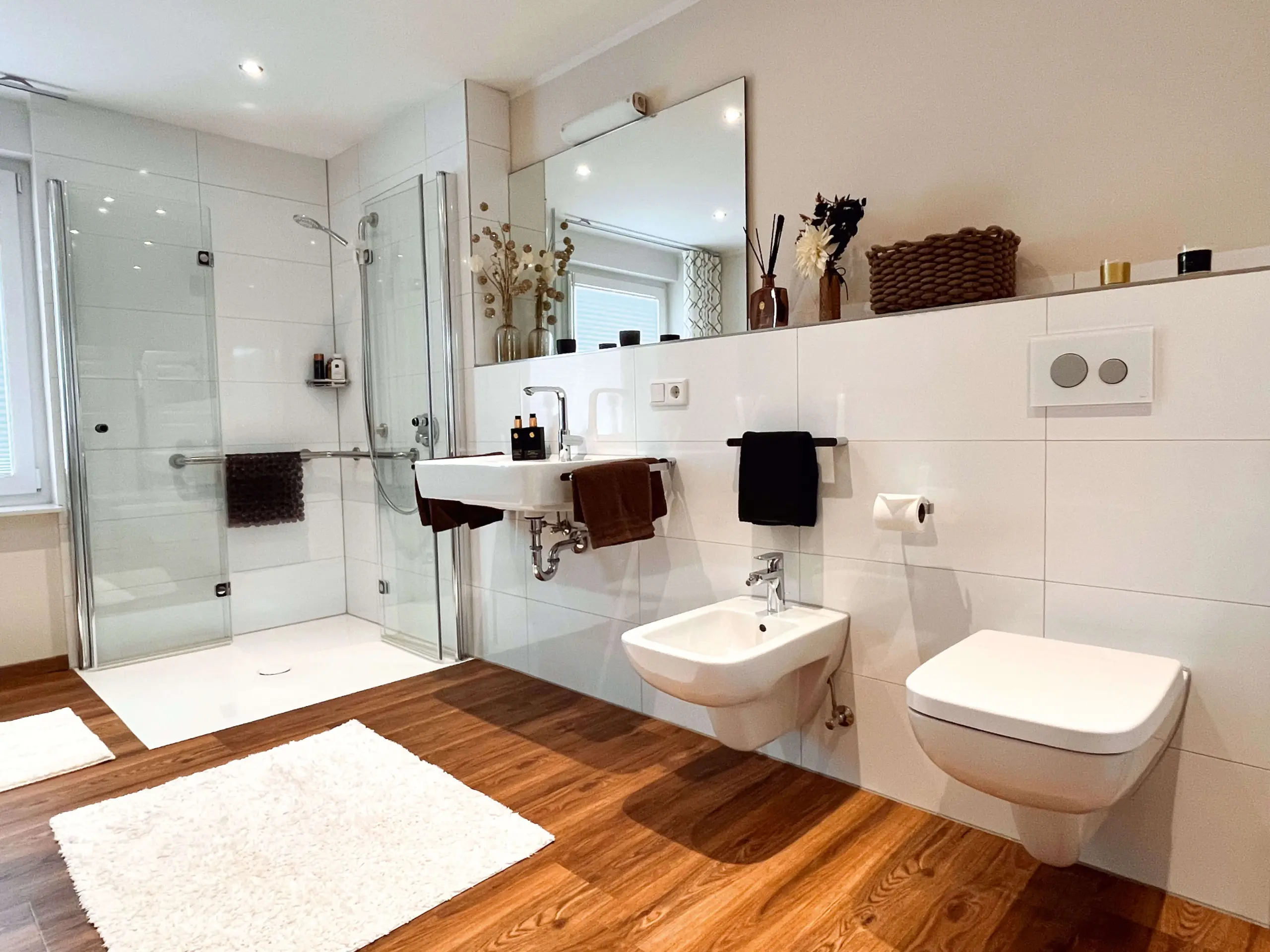 3 vollausgestattete Badezimmer und ein zusätzliches Gäste-WC sorgen dafür, dass es zu keiner Zeit zu Engpässen kommt.